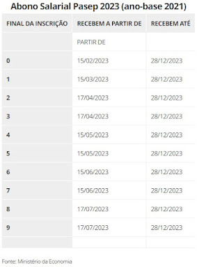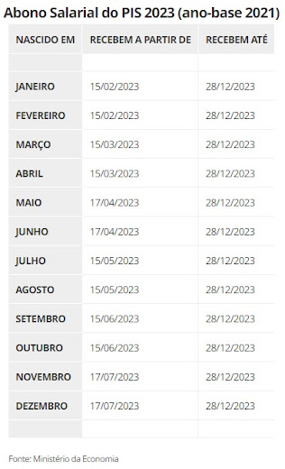 O abono salarial do PIS/Pasep de 2023 (ano-base 2021) começa a ser pago em 15 de fevereiro. A estimativa é que cerca de 23,6 milhões de pessoas sejam beneficiadas até dezembro recebendo até um salário mínimo, que tem novo valor desde o dia 1º de janeiro.