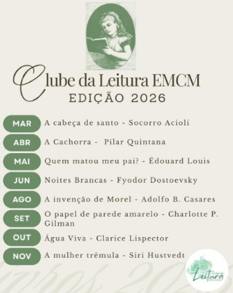 Criado em 2023, o Clube da Leitura EMCM é um projeto de extensão que, a cada edição, reúne uma lista de livros definida a partir de sugestões dos próprios participantes. É possível acompanhar as atividades do Clube por meio do perfil da ação no Instagram. A iniciativa busca estimular o hábito da leitura, fortalecer o diálogo entre diferentes públicos e aproximar a comunidade externa das atividades acadêmicas desenvolvidas pela Instituição.