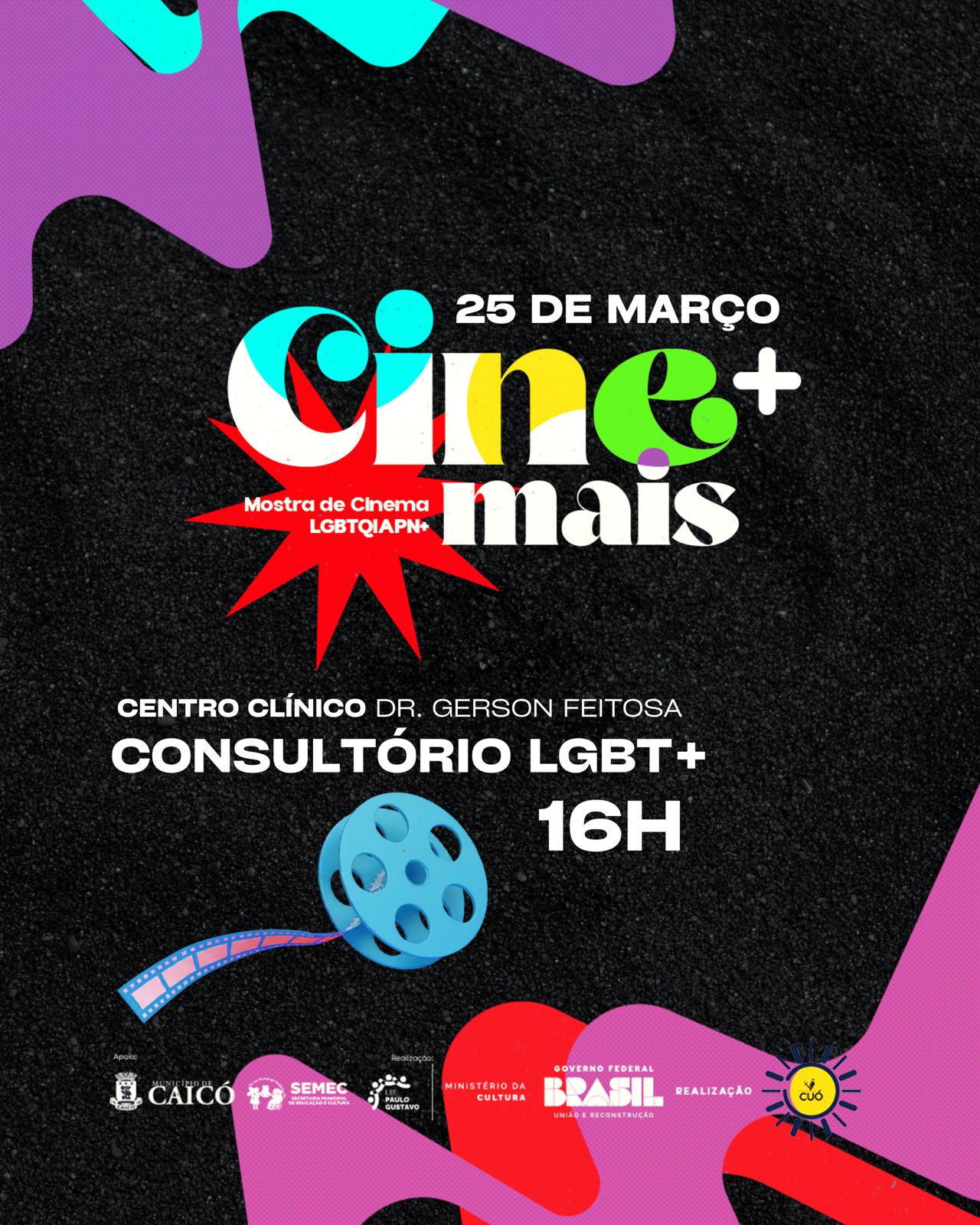 Neste dia 25 de março, às 16h, o projeto Cine Mais realiza uma sessão especial no Consultório LGBT+, localizado no Centro Clínico Dr. Gérson Feitosa, em Caicó.