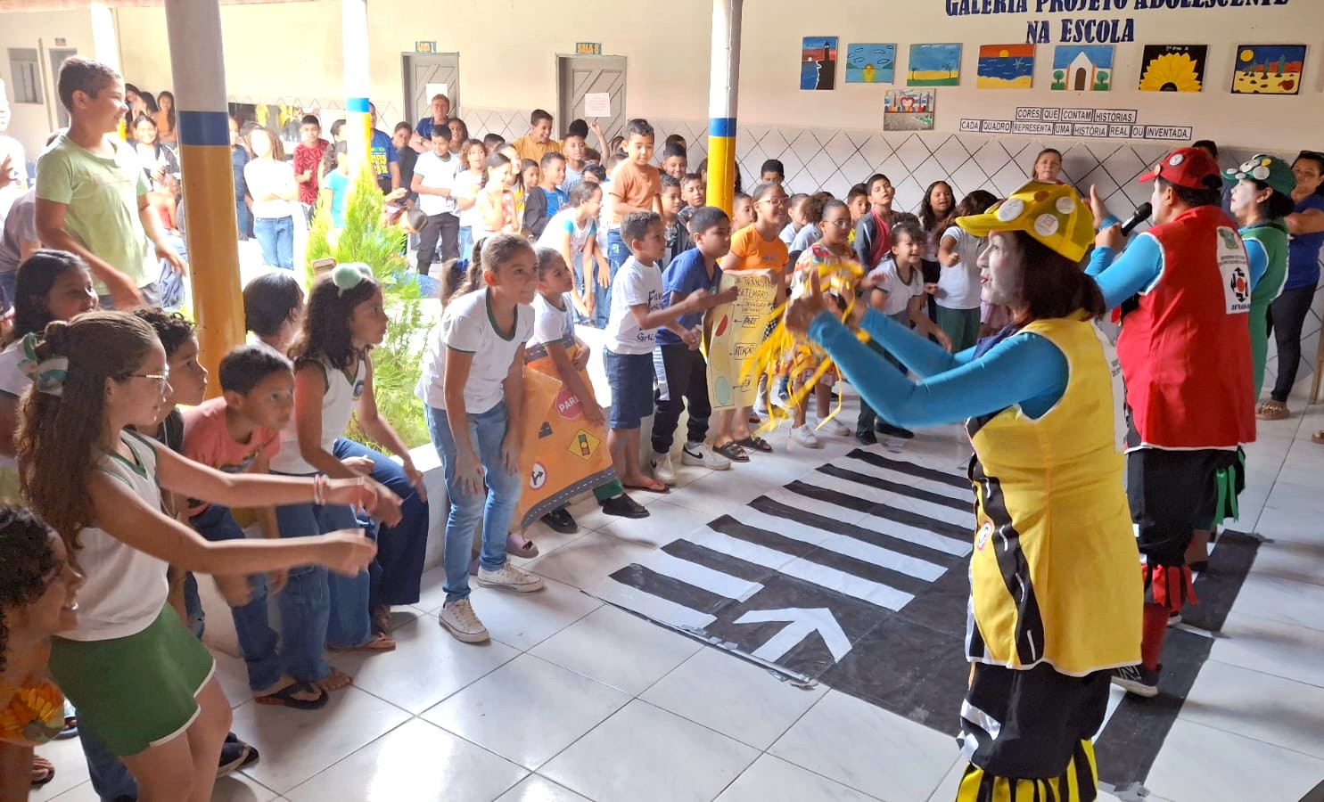 A programação contou com apresentações musicais cujas letras transmitiam mensagens de segurança, respeito e cuidado no trânsito. Além disso, os estudantes participaram de brincadeiras conduzidas pelos palhaços do Teatro Educativo, que de forma interativa abordaram condutas de transformação social capazes de contribuir para um tráfego mais cidadão, sem sinistros e sem mortes.