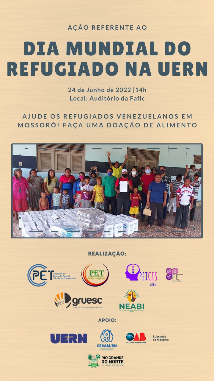 O Comitê Estadual Intersetorial de Atenção aos Refugiados, Apátridas e Migrantes (CERAM/RN) do Governo do Estado participa nesta sexta-feira, 24, da celebração pelo Dia Mundial do Refugiado, promovida pela Universidade do Estado do Rio Grande do Norte (UERN), às 14h, no auditório da Faculdade de Filosofia e Ciência Sociais (Fafic), no campus central, em apoio aos refugiados venezuelanos que vivem em Mossoró.