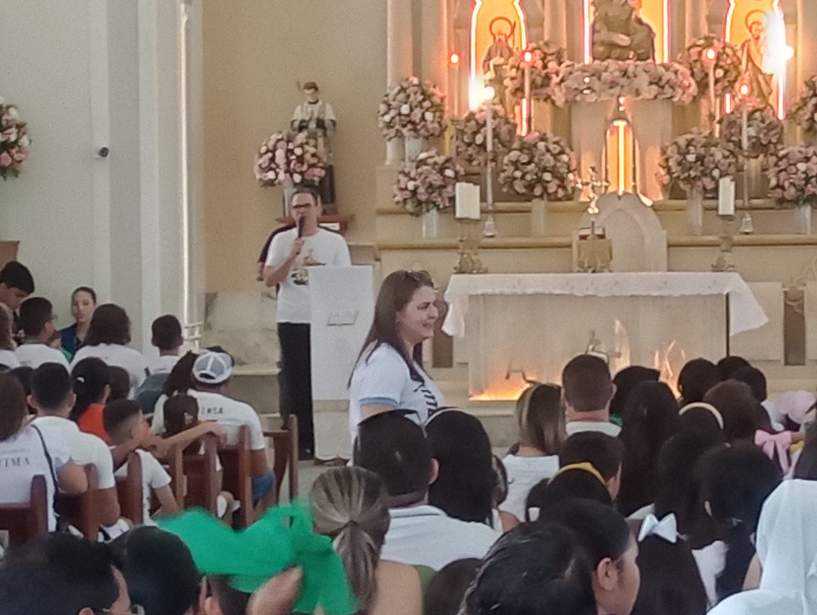 A caminhada foi seguida de uma santa missa na Catedral de Sant’Ana, presidida pelo padre Jerônimo Batista. As crianças participaram ativamente da celebração.