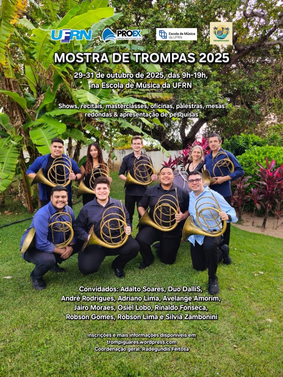 Entre os dias 29 e 31 de outubro, na Escola de Música da Universidade Federal do Rio Grande do Norte (EMUFRN), ocorre a Mostra de Trompas  2025. A atividade visa expor as produções da escola. O evento acontece das 9h às 19h, entre os auditórios Oriano de Almeida e Onofre Lopes, localizados na EMUFRN. O evento é gratuito e aberto ao público em geral.