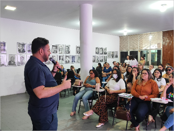O encontro aconteceu no auditório do Centro Administrativo e abordou temas centrais como a importância da leitura no cotidiano da sala de aula, a escola como espaço leitor e estratégias para ampliar o uso dos cantinhos de leitura.