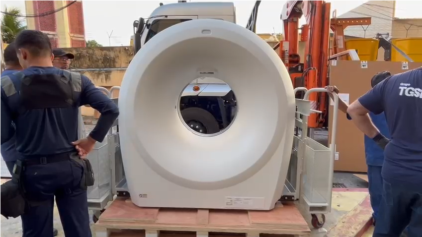 A chegada do tomógrafo foi supervisionada pelo secretário de Saúde Pública, Alexandre Motta. “Esse novo equipamento representa um avanço imenso na qualidade da assistência. E vai resolver as situações recentes que tivemos de dificuldade no hospital”, disse Alexandre.