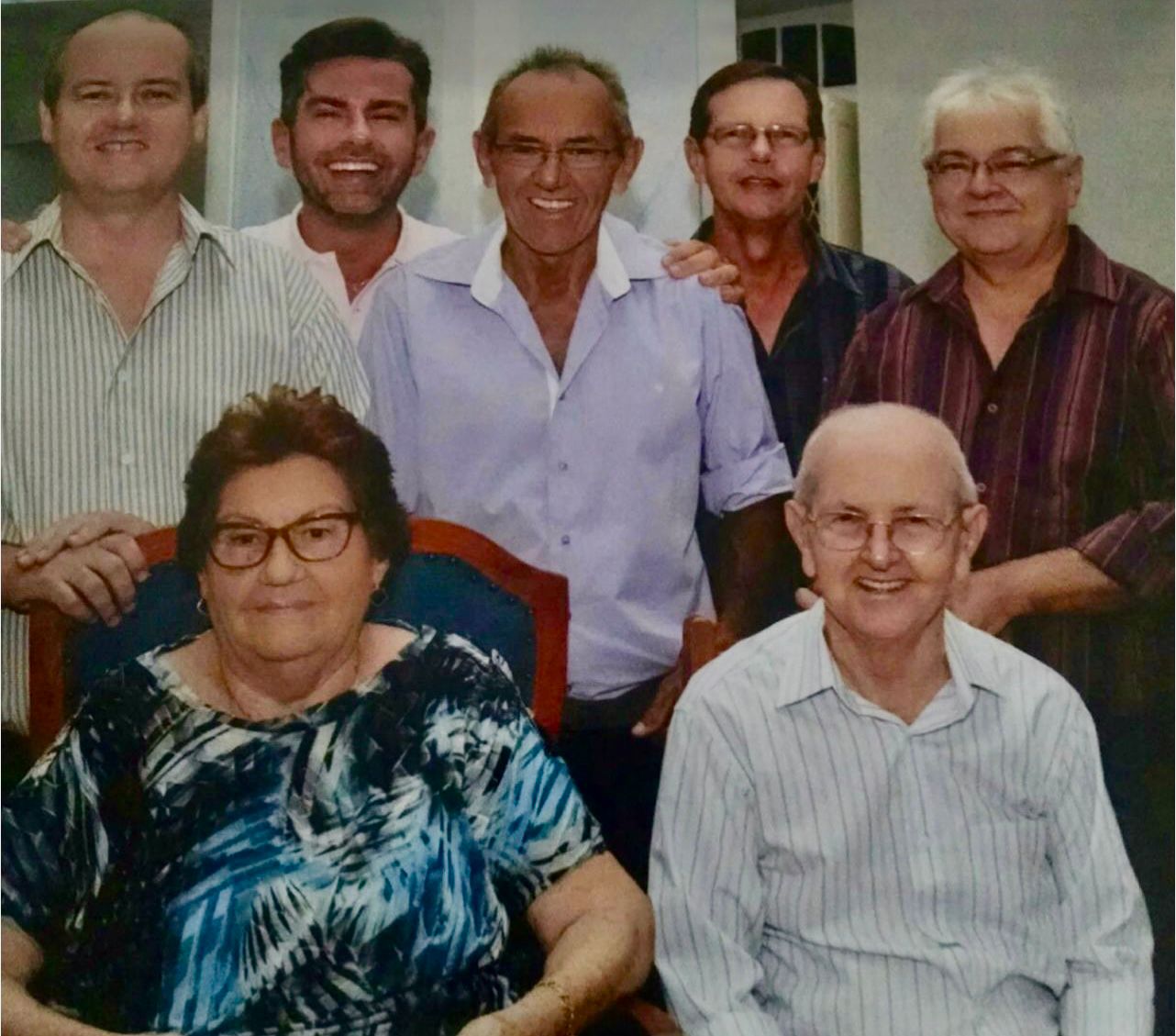 Com esposa e filhos, todos homens: Fábio, Rosman, João Braz, Chaguinha e Francisco