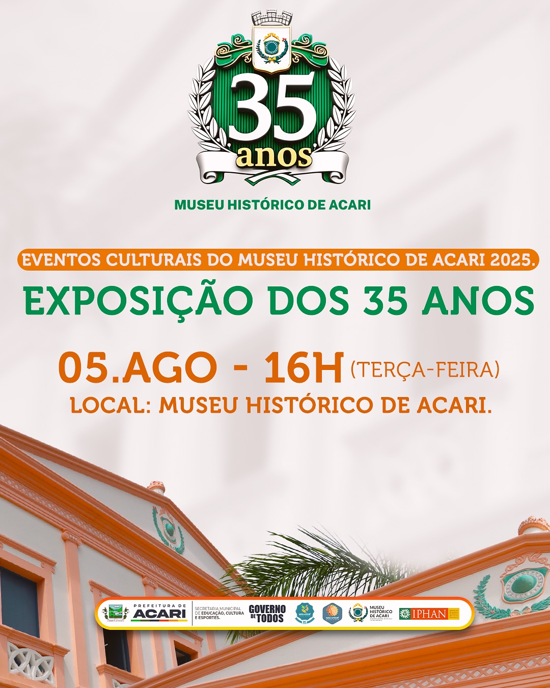 O Museu Histórico de Acari vai realizar a exposição comemorativa aos seus 35 anos de fundação. A mostra marca o início oficial da tradicional Festa de Agosto e será uma oportunidade única para revisitar momentos marcantes da história local.