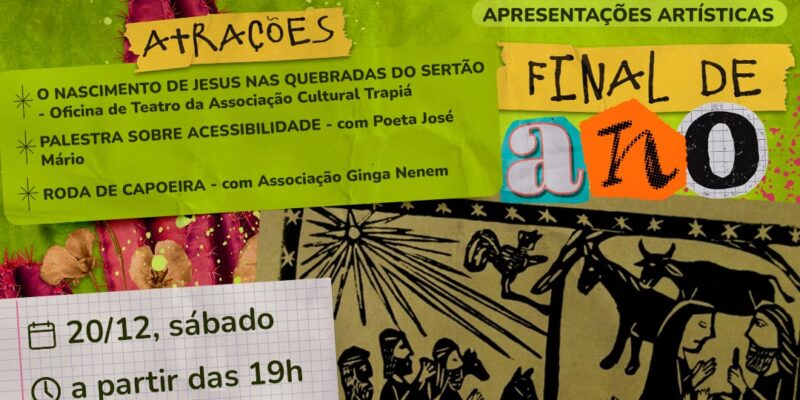 No próximo sábado, dia 20, a partir das 19h, a Praça Irmã Josefa, no bairro Soledade, em Caicó, se transforma em território de encontro, arte e celebração. Sob o céu do sertão, o espaço público torna-se palco aberto, para uma programação cultural gratuita, feita para todas as idades e sentidos….