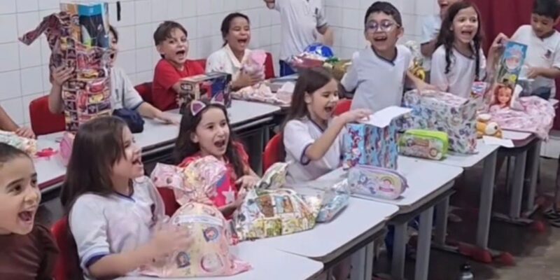 Alunos da Escola Municipal Professor José Gurgel recebem presentes da Campanha Papai Noel dos Correios em Caicó