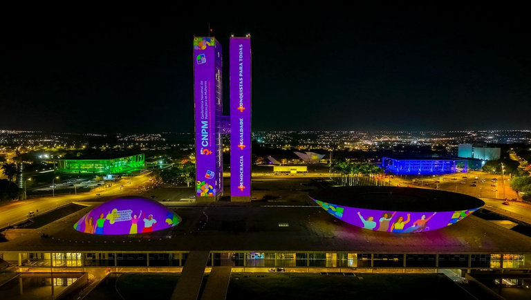 Na noite da última sexta-feira (26/9), o Congresso Nacional foi iluminado pela projeção da 5ª Conferência Nacional de Políticas para as Mulheres (5ª CNPM), promovida pelo Ministério das Mulheres e pelo Conselho Nacional dos Direitos da Mulher (CNDM).
