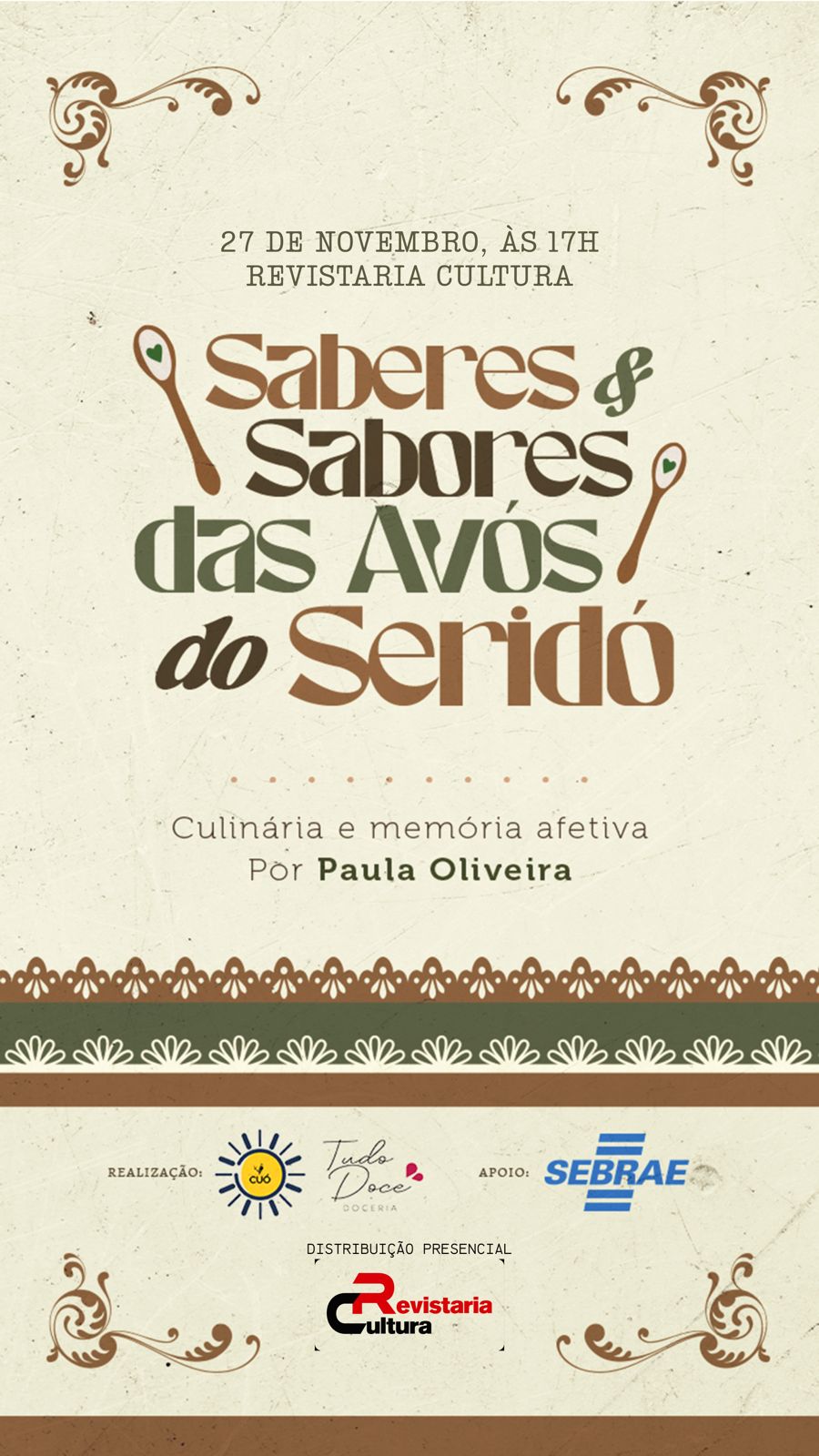 Para celebrar esse lançamento, será realizada amanhã, às 17h, na Revistaria Cultura, uma tarde de autógrafos com a autora. Um momento pensado para reunir afeto, tradição e reconhecimento às mulheres que, com suas mãos e saberes, alimentam a cultura do Seridó.