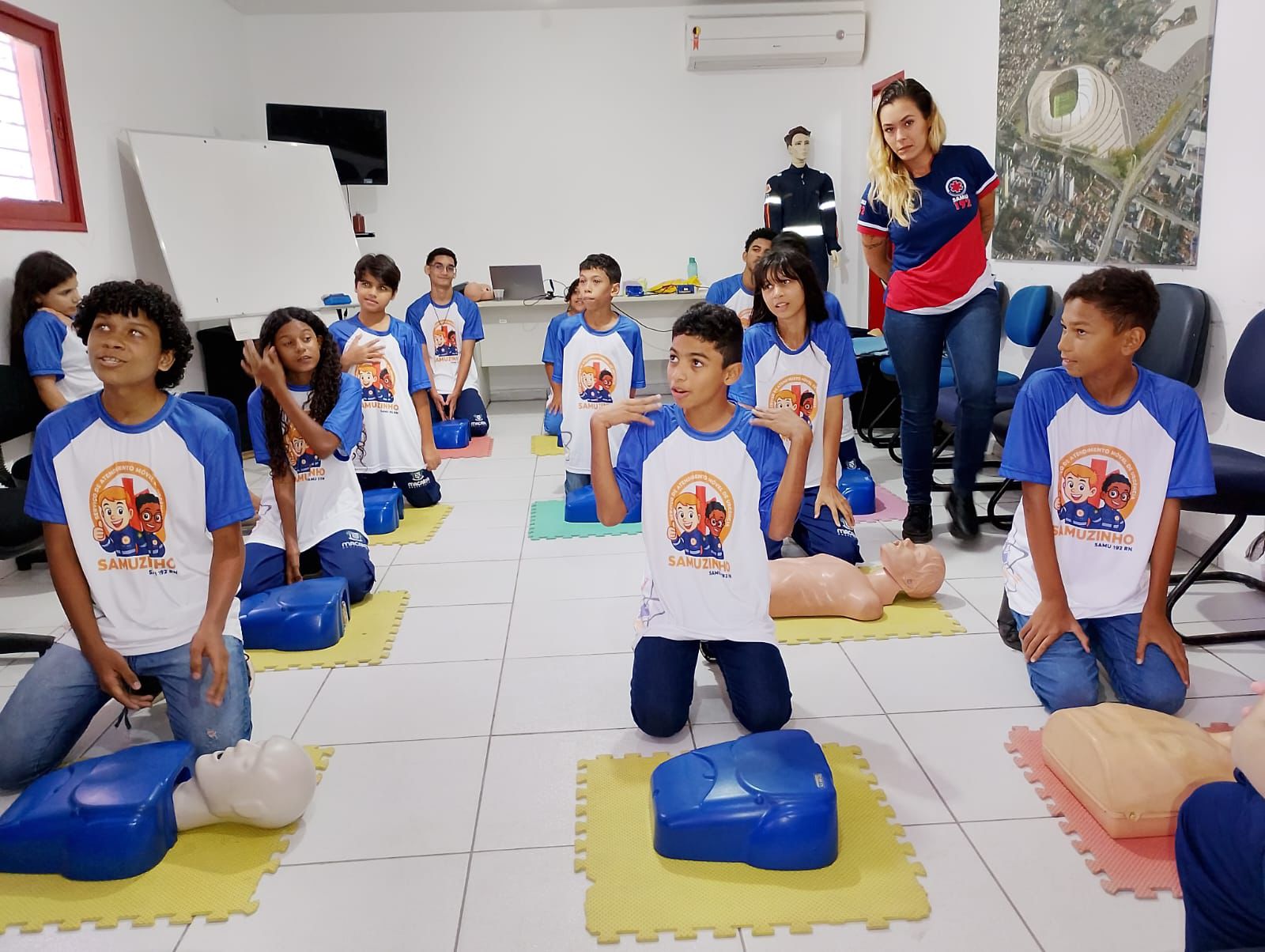 O SAMU 192 RN, realizou, na manhã desta terça-feira (17), a aula inaugural do projeto Samuzinho, na sede do serviço em Macaíba. O projeto é realizado pelo Núcleo de Educação Permanente (NEP), em parceria com os municípios da Região Metropolitana.