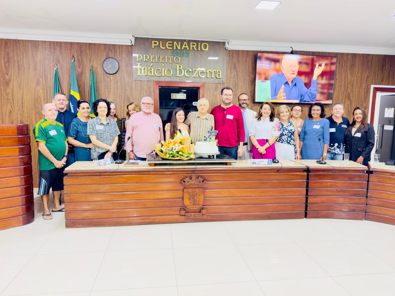 A Câmara Municipal de Caicó promoveu, na noite desta terça-feira (28), no Plenário Prefeito Inácio Bezerra, uma Sessão Solene em homenagem aos 80 anos do historiador e escritor Adauto Guerra. A solenidade, requerida pelo vereador Andinho Duarte (PV), teve como objetivo reconhecer a relevância das contribuições do homenageado à cultura, à educação e à preservação da memória histórica do Seridó.