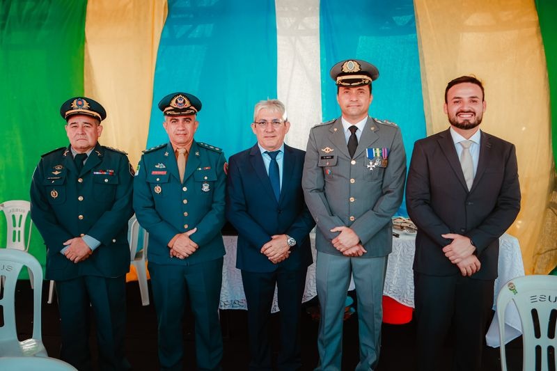 A solenidade contou com a presença de diversas autoridades, entre elas o prefeito Dr. Tadeu, o vice-prefeito Toinho Santiago, o secretário municipal de Educação, professor Sérgio André, o comandante do 1º Batalhão de Engenharia de Construção (1º BEC), Tenente-Coronel Arthur Petrônio de Carvalho Brito, o comandante do 6º Batalhão de Polícia Militar (6º BPM), Tenente-Coronel Flávio Valdez, além de representantes da Câmara Municipal, da 10ª DIREC, secretários municipais e membros da imprensa.